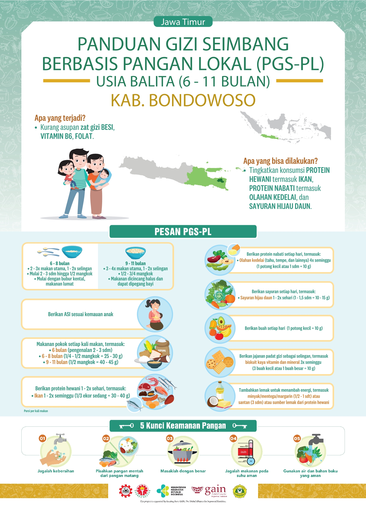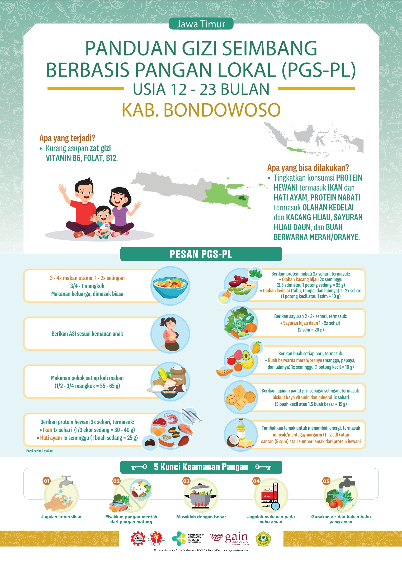 Kabupaten Bondowoso secara geografis berada di bagian timur Provinsi Jawa Timur dengan jarak dari Ibu Kota Provinsi (Surabaya) sekitar 200 km. Luas wilayahnya 1.560,10 Km² atau sekitar 3,26% dari luas total Provinsi Jawa Timur, yang terbagi menjadi 23 kecamatan, 10 kelurahan, 209 desa dan 913 dusun. Resep lokalnya adalah Nugget Ikan Sayur yang kaya akan vitamin!