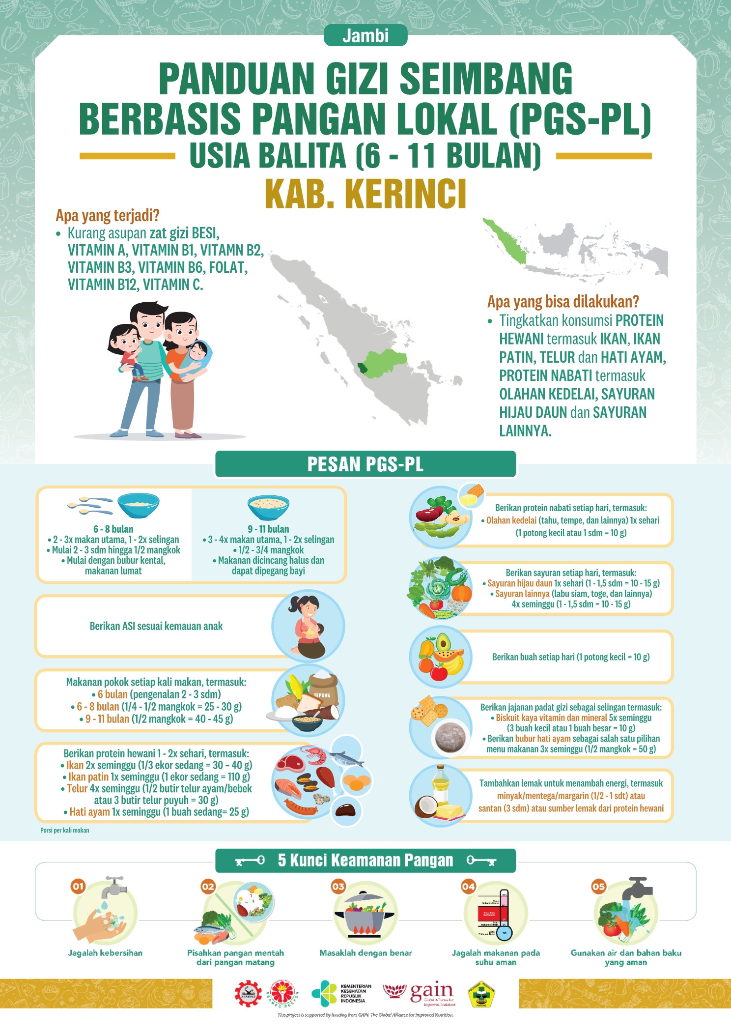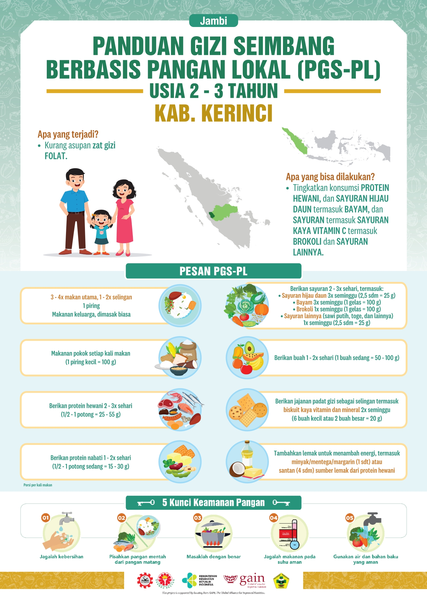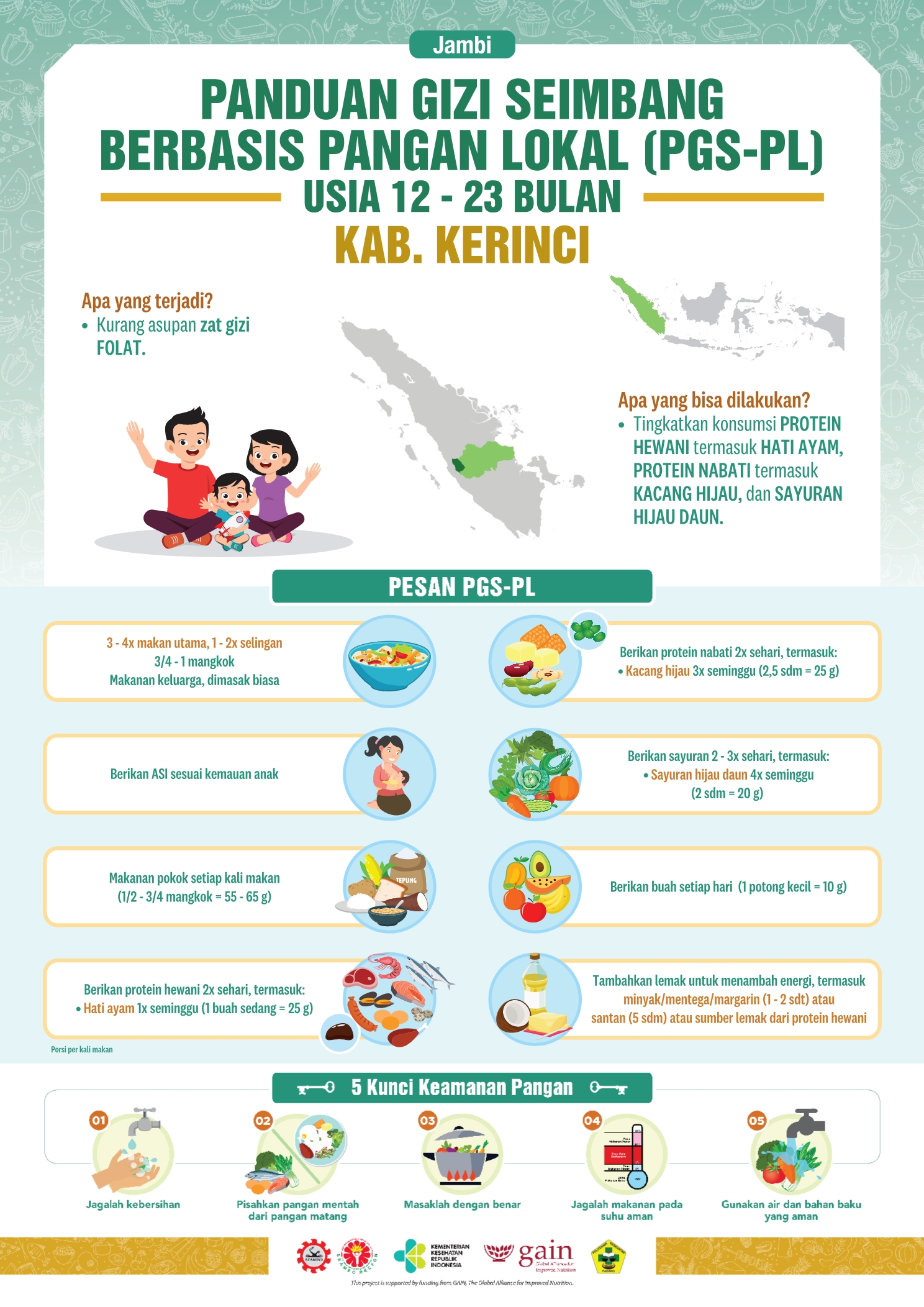 Kabupaten Kerinci terletak di Provinsi Jambi yang terdiri dari 16 kecamatan dengan 285 desa. Secara umum topografi wilayahnya merupakan perbukitan dan pegunungan. Resep lokal dari daerah ini yaitu Gulai Ikan Patin Daun Bayam. Hmm, penasaran kan?
